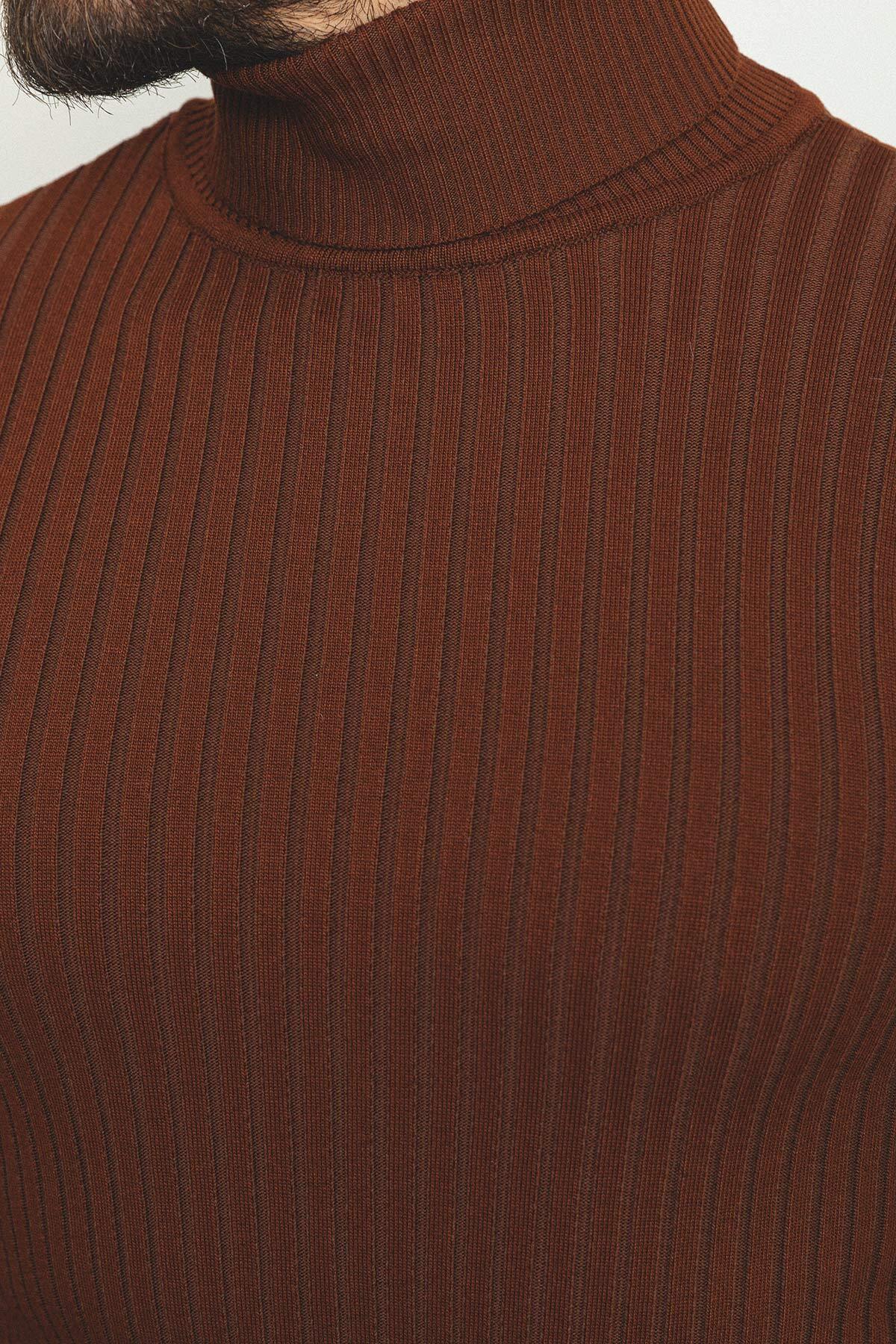 MCR Çizgili Slim Fit Tam Balıkçı Yaka Erkek Kazak Kiremit – 11418.22K