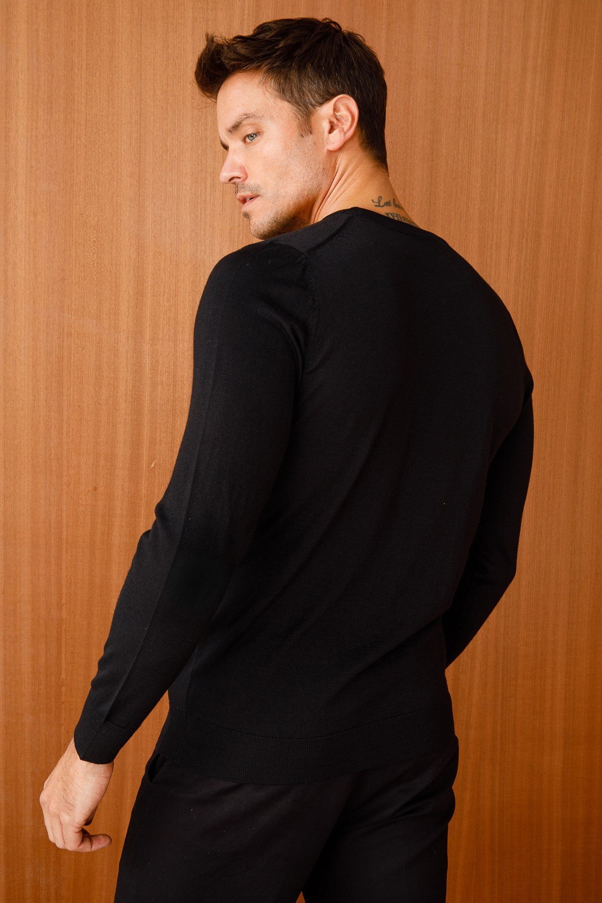 Desen Triko Erkek Basic Sıfır Yaka Ince Triko Kazak Siyah