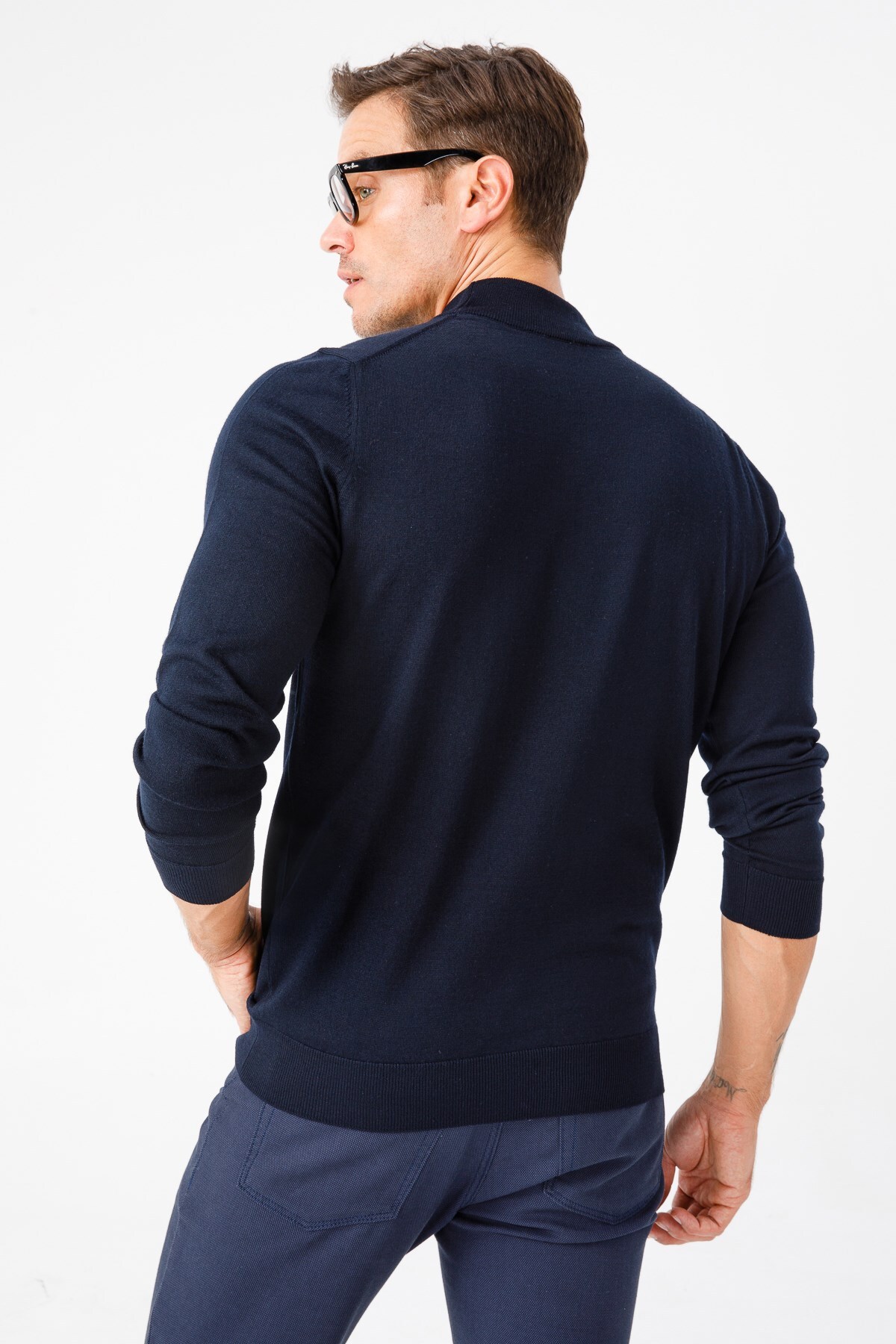Desen Triko Erkek Basic Yarım Balıkçı Ince Triko Kazak Koyu Lacivert