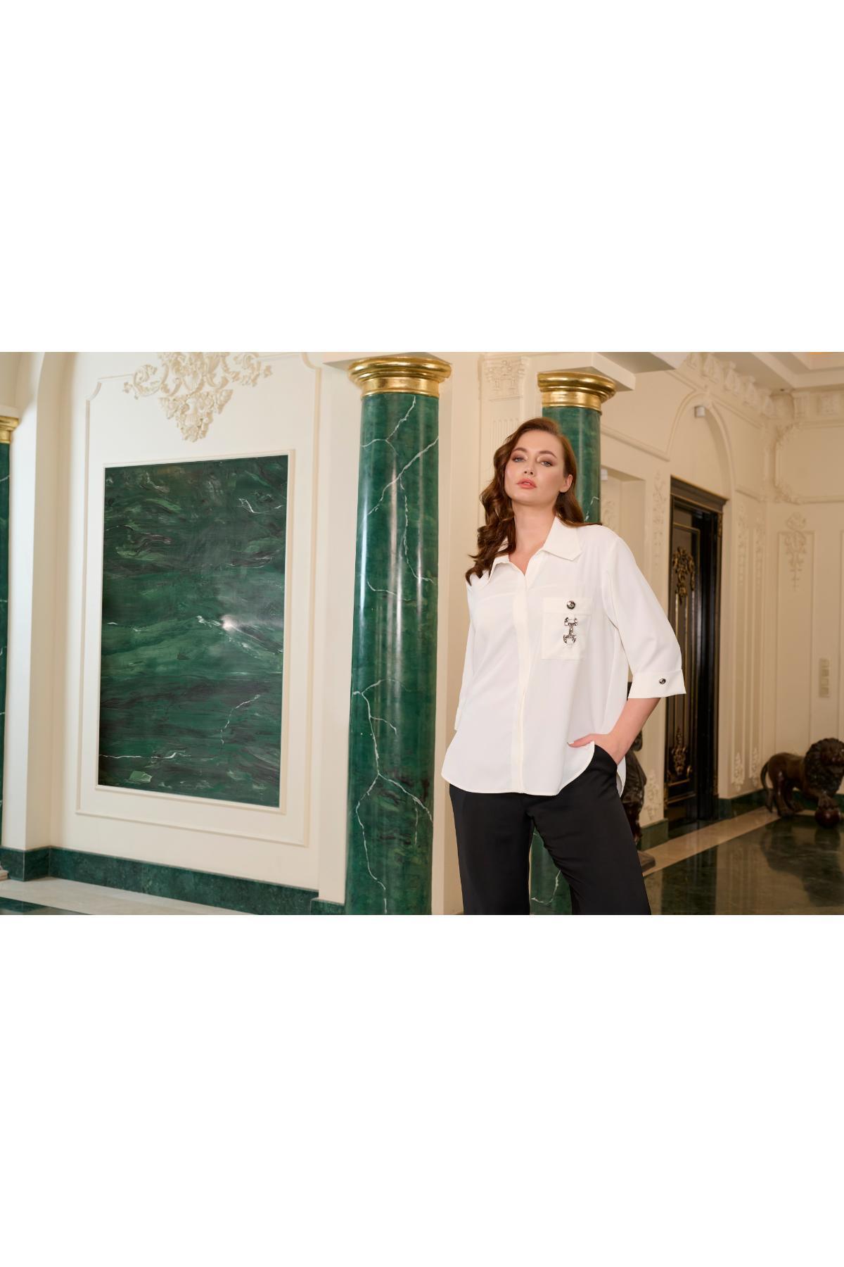 DE WHITES BÜYÜK BEDEN YAKASI TAŞ İŞLEMELİ GÖMLEK 31401