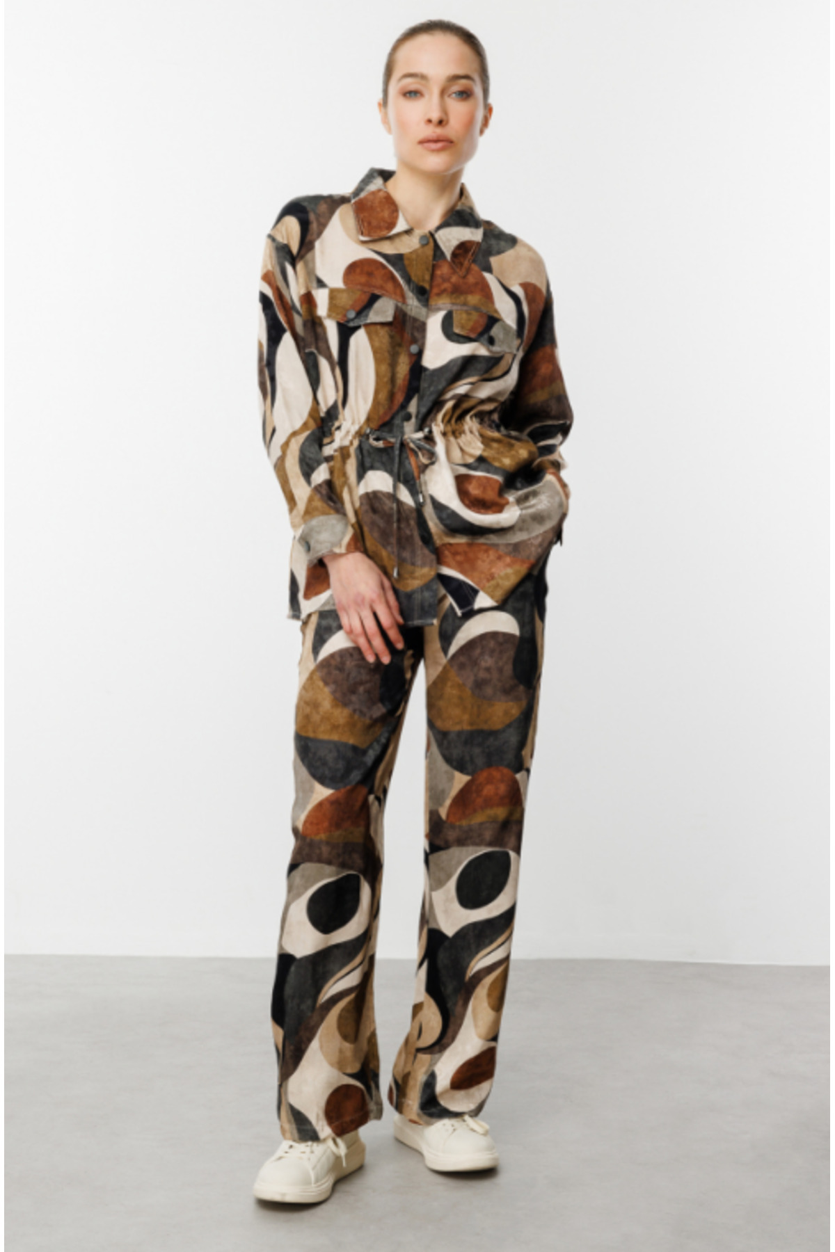 ON Lastik Bel Bol Paça Desenli Pantolon – MOKKA 56513