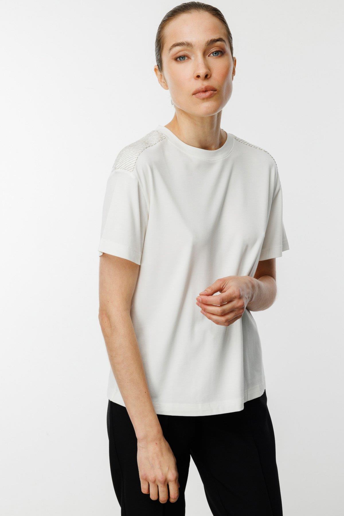 ON Fashion BLUZ OMUZLARI TAŞLI SIFIR YAKA KISA KOL 51348