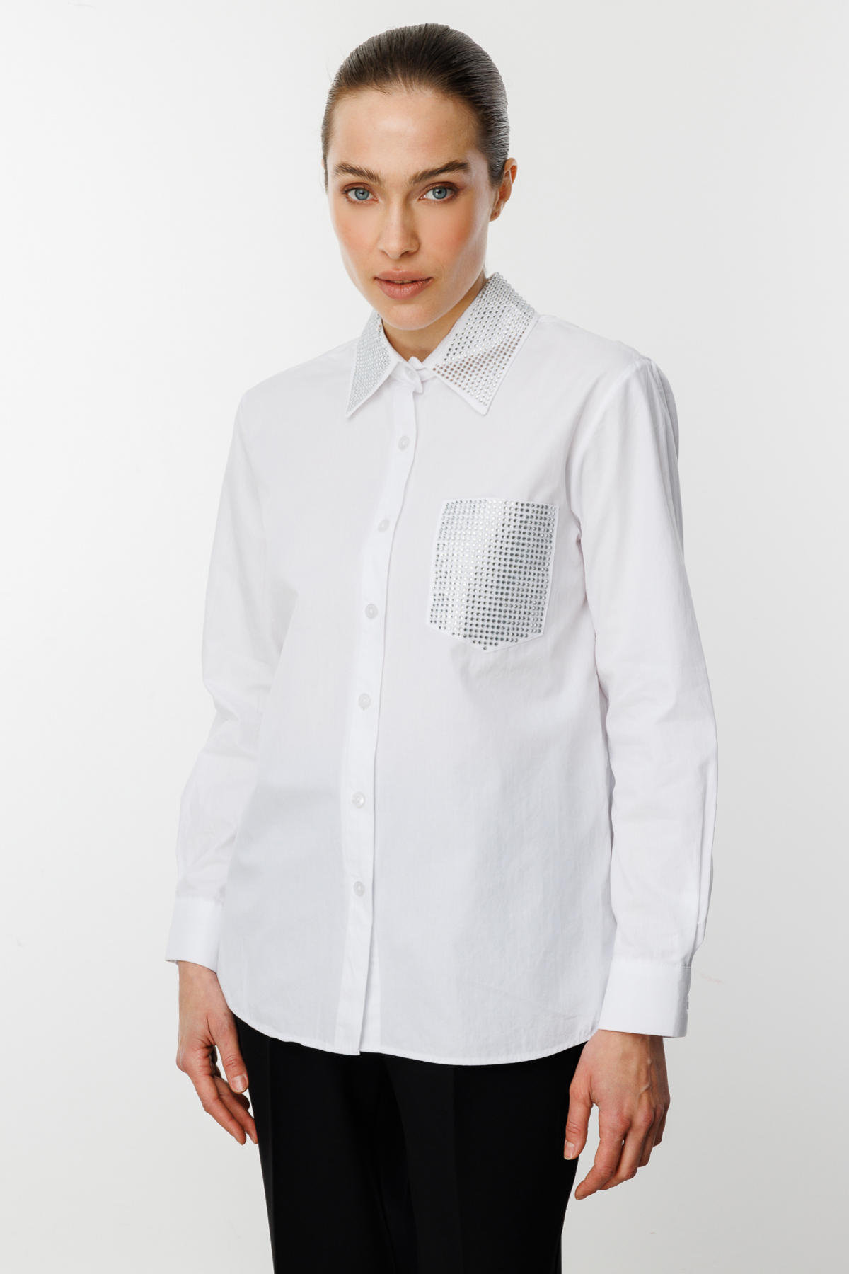 ON Yakası Ve Cebi Taş Baskılı Gömlek 56305