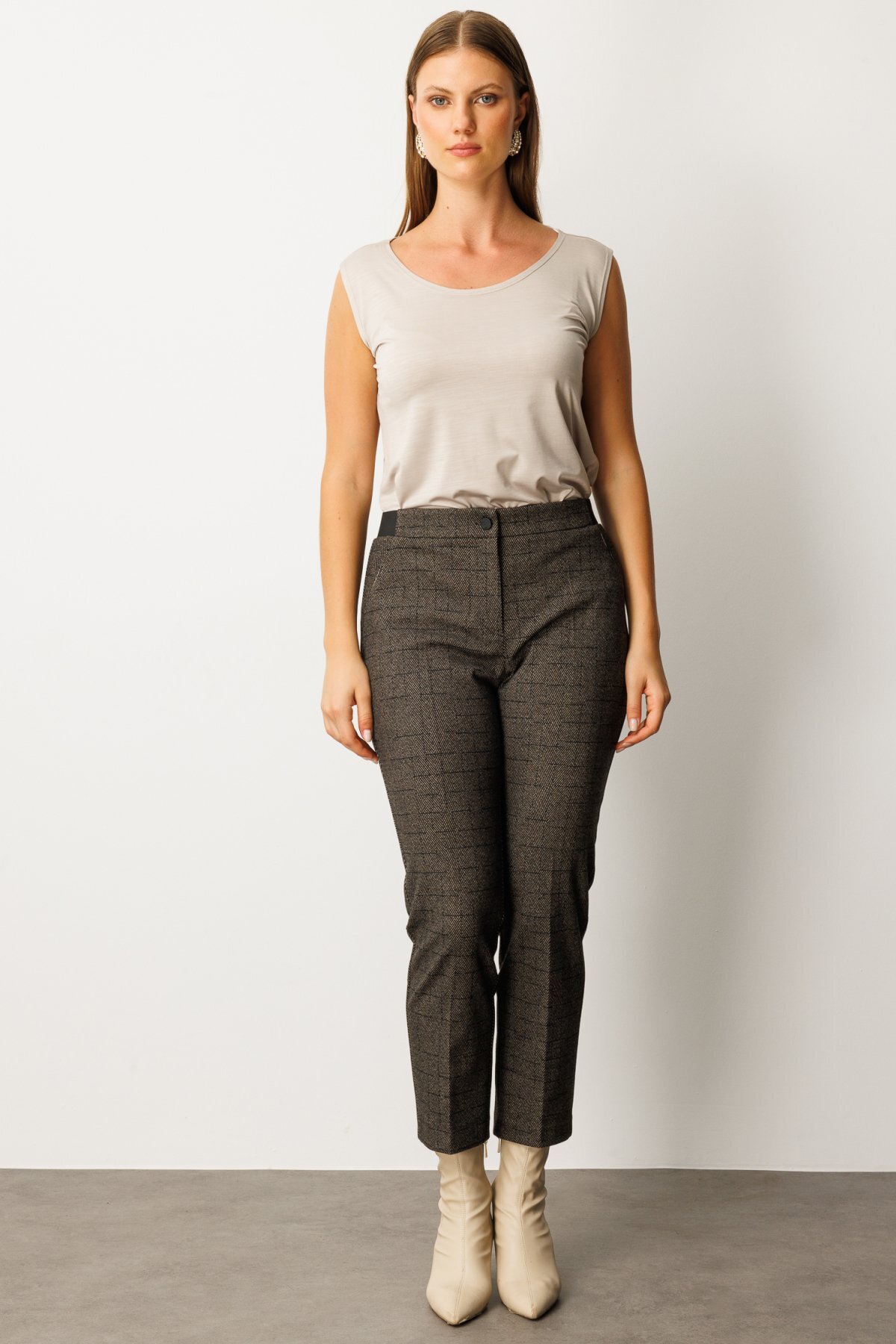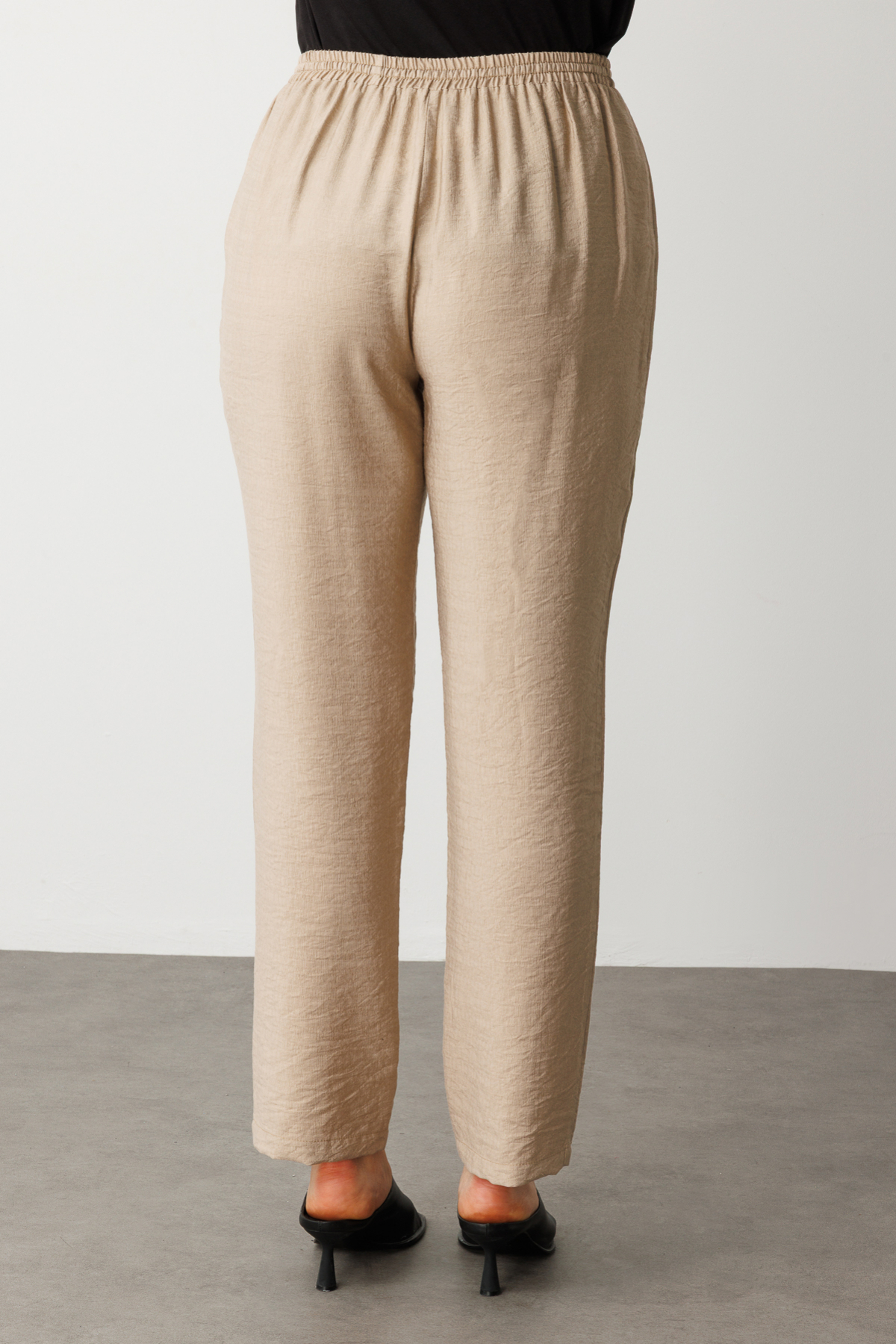 – Yüksek bel tasarımı ile konforlu bir kullanım sunar ve vücut hatlarını zarifçe sararak şık bir görünüm sağlar.; – Bukle kumaşı, yumuşak dokusuyla gün boyu rahatlık hissi verirken, uzun paça kesimiyle modern bir siluet oluşturur.; – Düz deseni sayesinde kolayca kombinlenebilir; farklı üst giyim parçalarıyla uyum içinde olabilir.; – Beli lastikli yapısı sayesinde esneklik kazandırır ve hareket özgürlüğü tanır; her türlü aktivitede rahat etmenizi sağlar.; – Günlük ortamlarda ideal olan bu pantolon, hem işlevsellik hem de stil açısından beklentilerinizi karşılar.; – Viskon materyali nefes alabilir özellikte olup cildinizin gün boyu ferah kalmasına yardımcı olur.