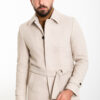 MCR Düz Bej Slim Fit Gömlek Yaka Kuşaklı Kaşe Erkek Kaban