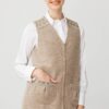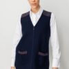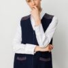 – V yaka tasarımı ile modern ve şık bir görünüm sunar.; – Önü keçe fermuar detayına sahip olup, hem fonksiyonel hem de estetik bir dokunuş sağlar.; – Normal boy kesimiyle rahat bir kullanım imkanı tanır.; – Çift cepli yapısı küçük eşyalarınız için pratik saklama alanları sunar.; – Basic koleksiyonun sadeliğini günlük kombinlerinizde tercih edebilirsiniz.; – Kolsuz kol tipi sayesinde hafif ve serin tutan bir yapıya sahiptir.; – Astarsız olması nedeniyle hafifliği ön plana çıkarırken, %80 yün içeriğiyle sıcak tutma özelliği gösterir.; – Lacivert rengiyle kolayca kombinlenebilen ve zamansız bir stil oluşturur.; – Triko görünümlü dokusuyla yumuşaklık hissi verirken, orta kalınlığı mevsim geçişlerinde ideal konforu sağlar.; – Elde yıkama önerisiyle uzun süreli kullanım için bakım kolaylığı sunar.; – Triko görünümlü dokusuyla dikkat çekici bir siluet çizer.; – Sadece lacivert renkte mevcuttur; bu da gardrobunuzda temel parçalar arasında yer almasını sağlar.