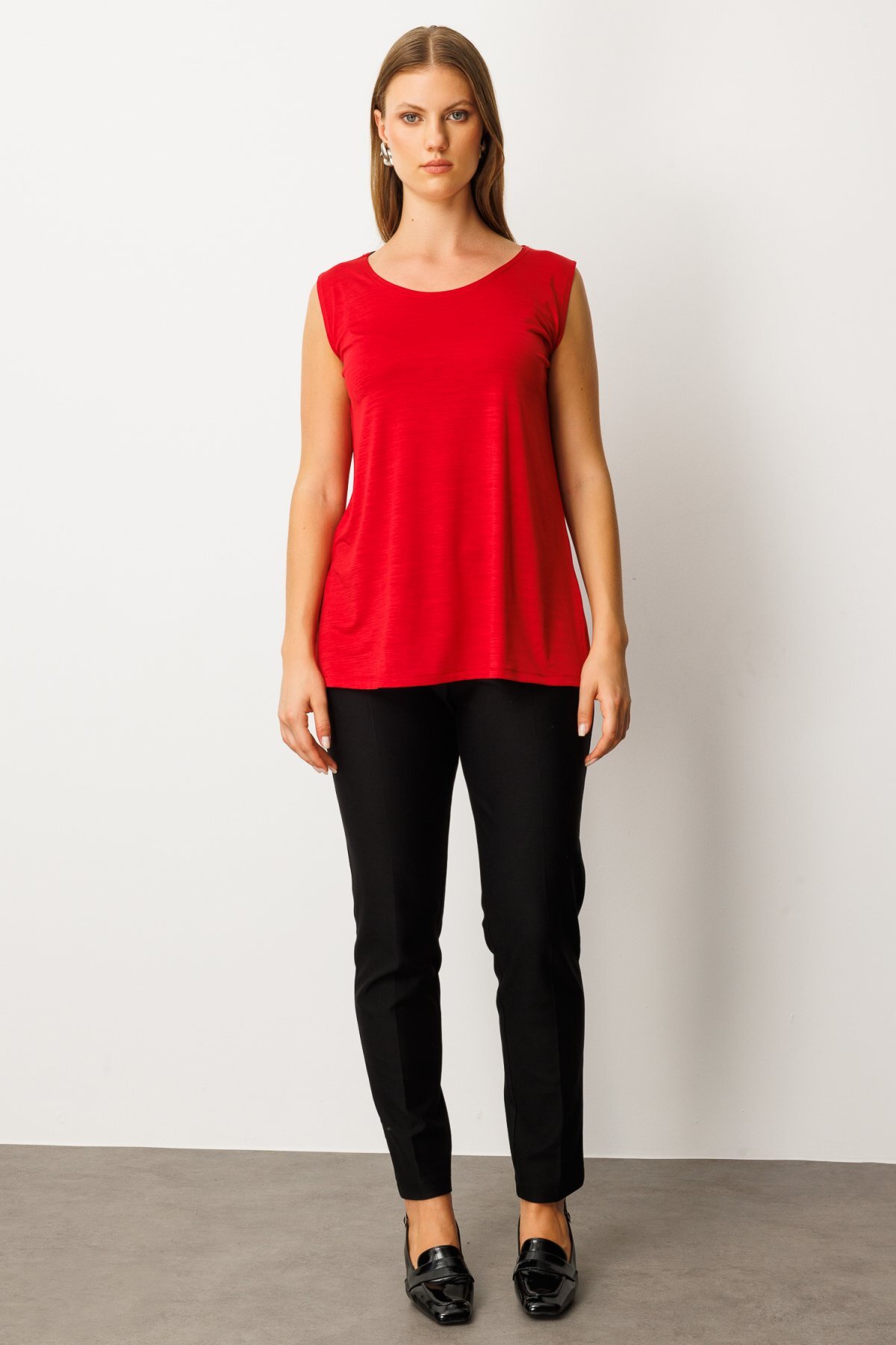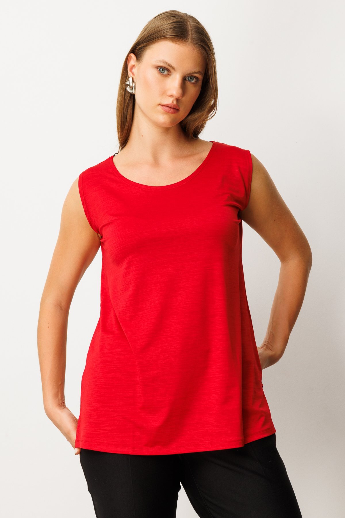 Ürün Kalıbı: Büyük BedenÜrün Kalınlığı: İnceÜrün Boyu: 66Kumaş İçeriği: %95 poliester %5 elastanKumaş Tipi: DokumaAstar Durumu: AstarsızYaka Tipi: Sıfır YakaKol Tipi: KolsuzKol Boyu: KolsuzÜrün Sezonu: 2026 KışManken Ölçüleri: 1.75 cm 105/80/108 Beden: 44/1/XL