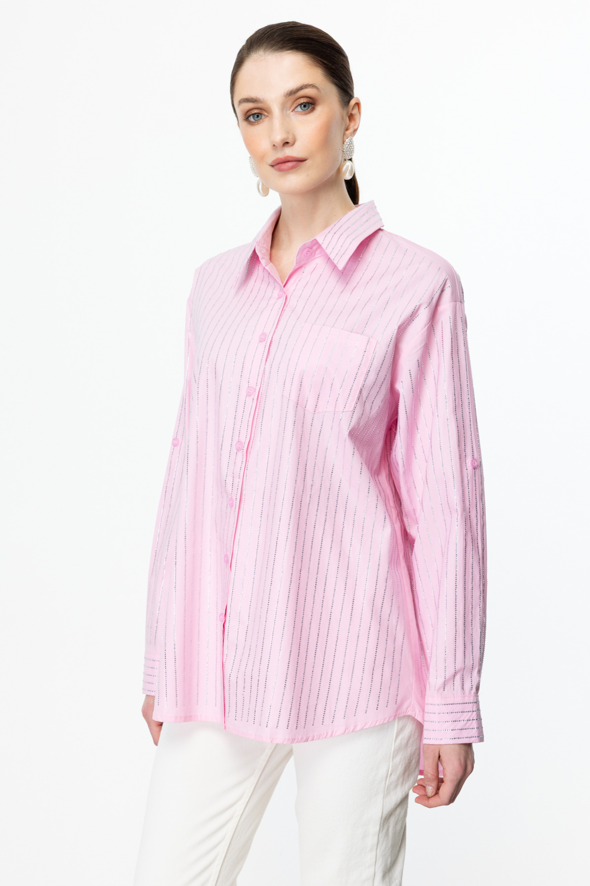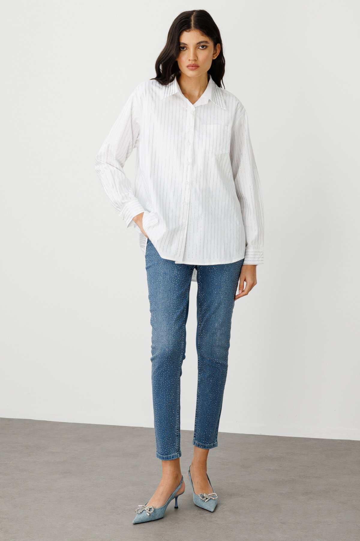 Ürün Özellikleri: Ön ve arka kısmı taşlı, üst kısmı torba cepli, düğmeli, uzun kollu, pamuklu Ürün Kalıbı: Tam Kalıp Ürün Kalınlığı: İnce Ürün Boyu: 73 cm Kumaş İçeriği: %100 pamuk Ürün Sezonu: İlkbahar/Yaz Manken Ölçüleri: 1.76cm 84/61/89 Numune Beden: Ürünün en küçük bedenidir.