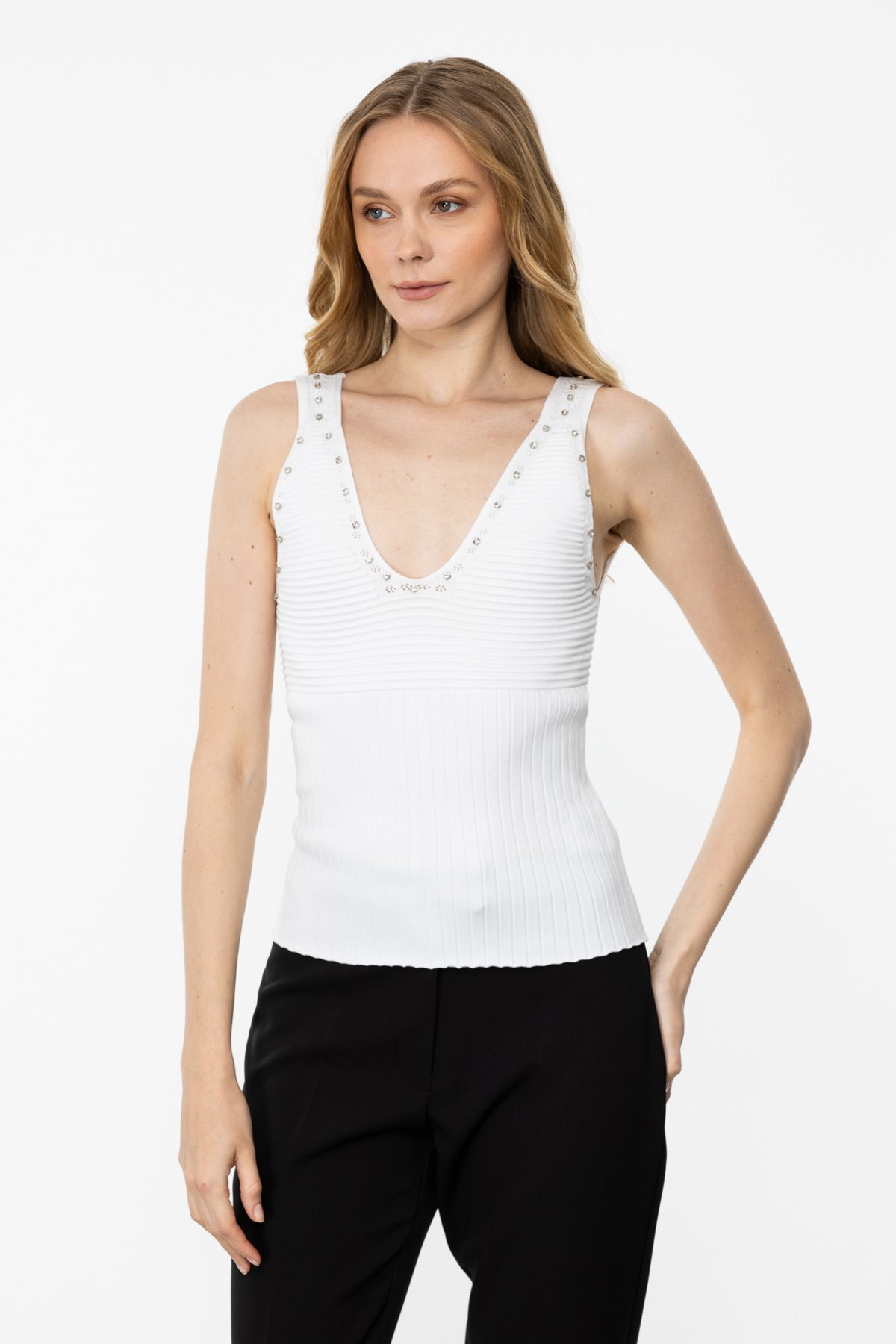 – Her yaş grubuna hitap eden tasarımıyla, geniş bir kullanıcı yelpazesine sahip; – V yaka kesimi ile feminen ve şık bir görünüm sunar; – Askılı kol tasarımı sayesinde yaz aylarında serinlik ve konfor sağlar; – Triko materyali, yumuşak dokusuyla gün boyu rahatlık sunar; – Standart boy uzunluğu, farklı vücut tiplerine uyum sağlar; – Triko kumaşı, esnek yapısıyla hareket özgürlüğü tanır; – Regular kalıp ile rahat bir kullanım imkanı verirken, vücut hatlarını nazikçe sarar; – Baskılı detayları ile modern ve dinamik bir stil oluşturur;