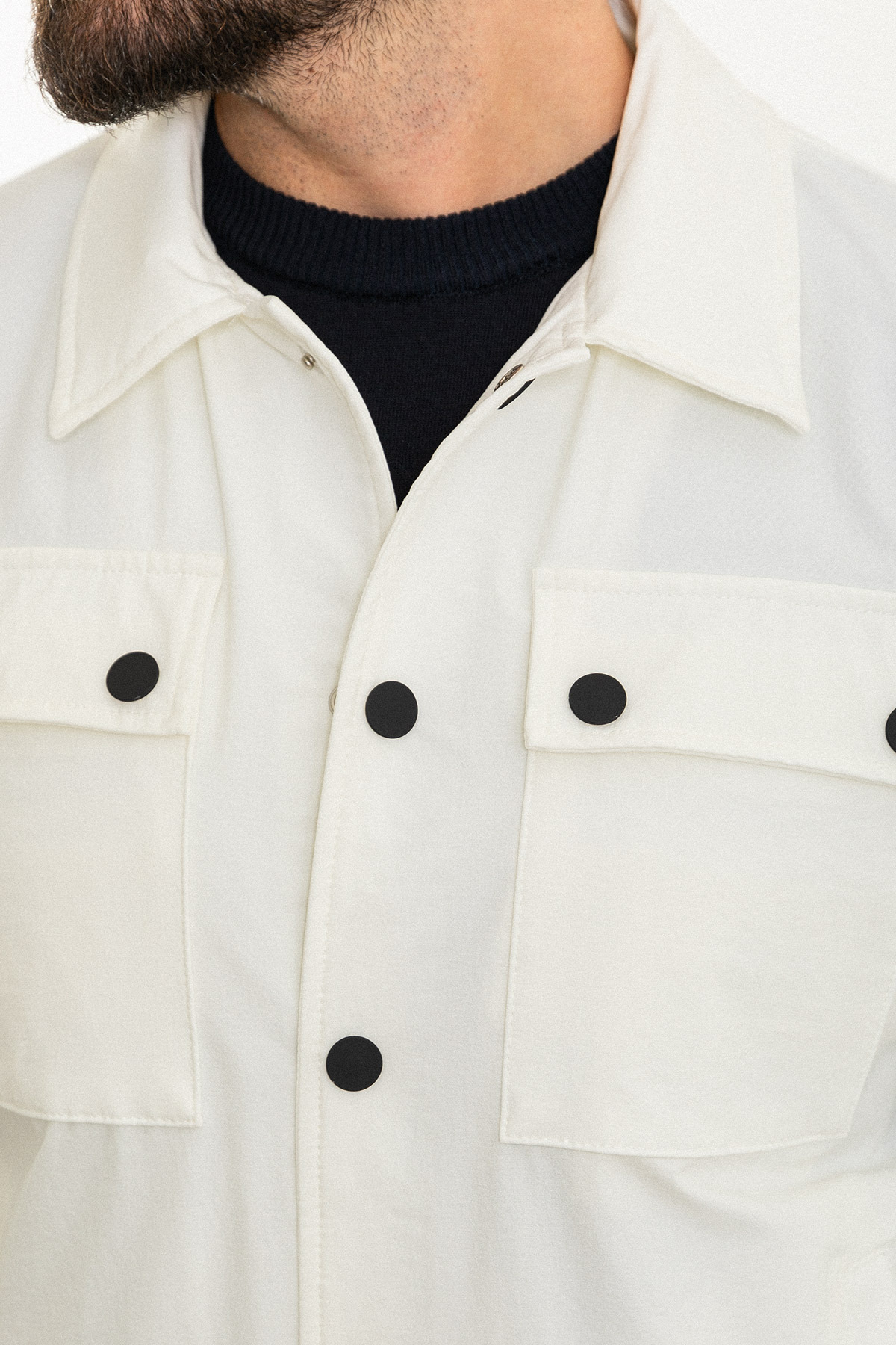 MCR Düz Ekru Slim Fit Gömlek Yaka Erkek Mont
