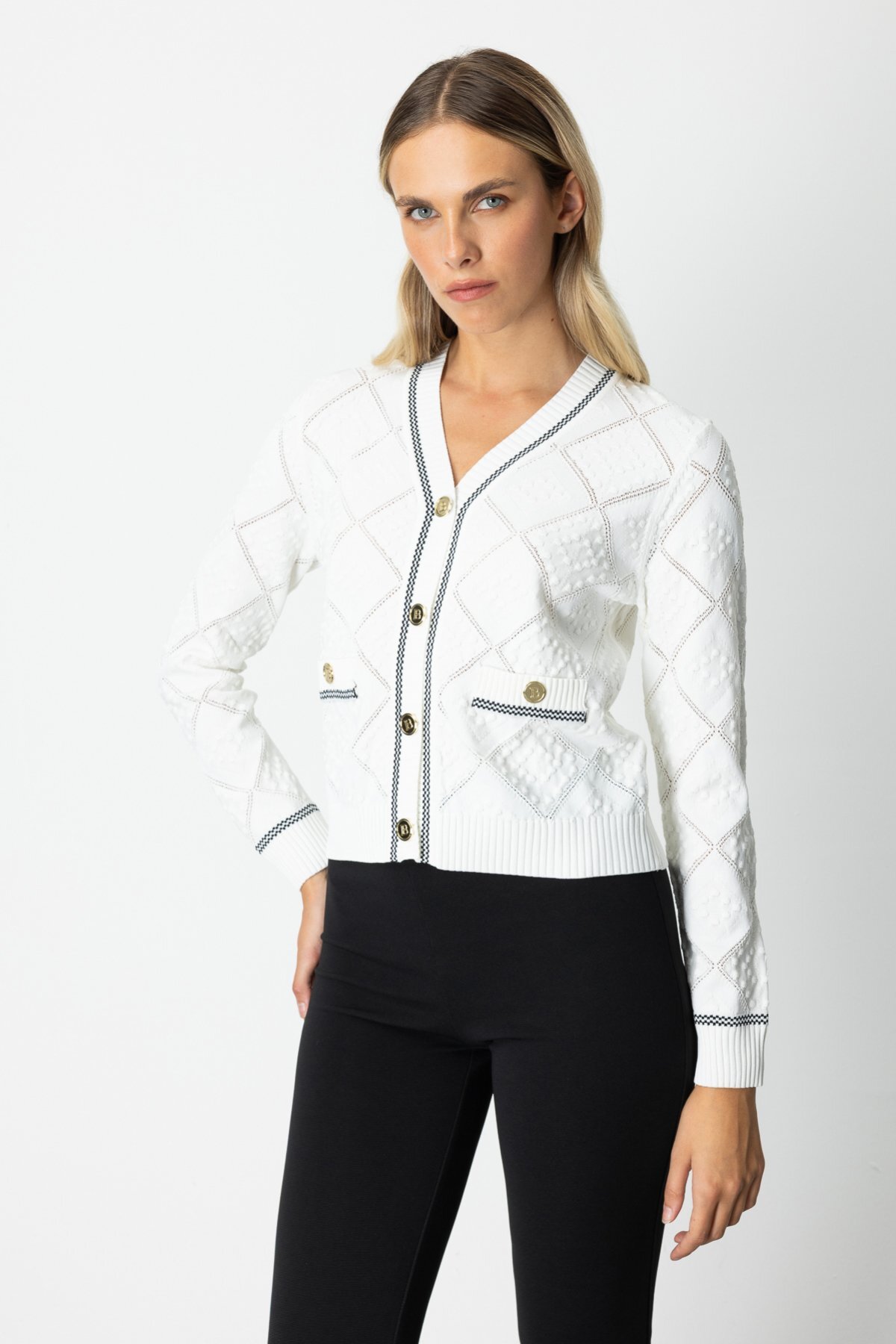 V Yaka Kabartmalı Hırka