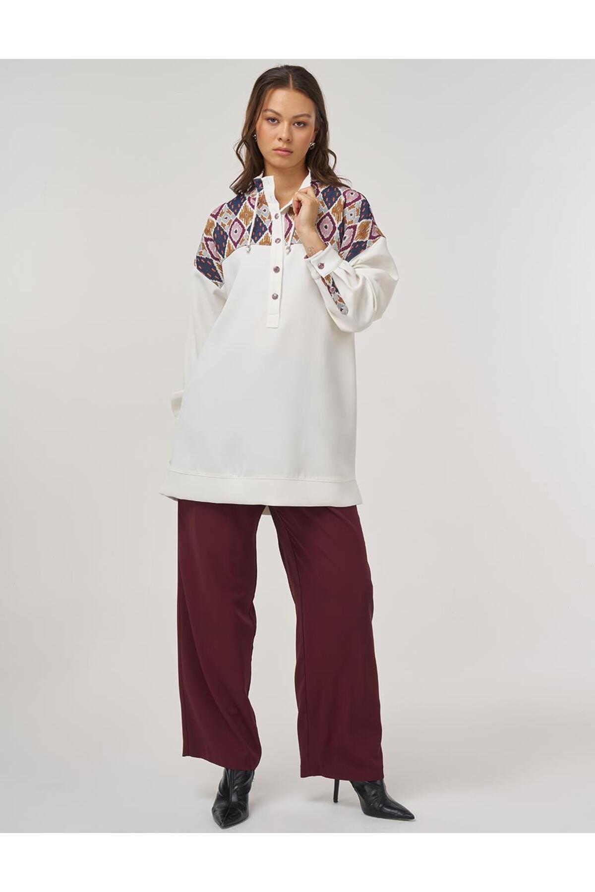 Dik Yaka Sweatshirt Ekru