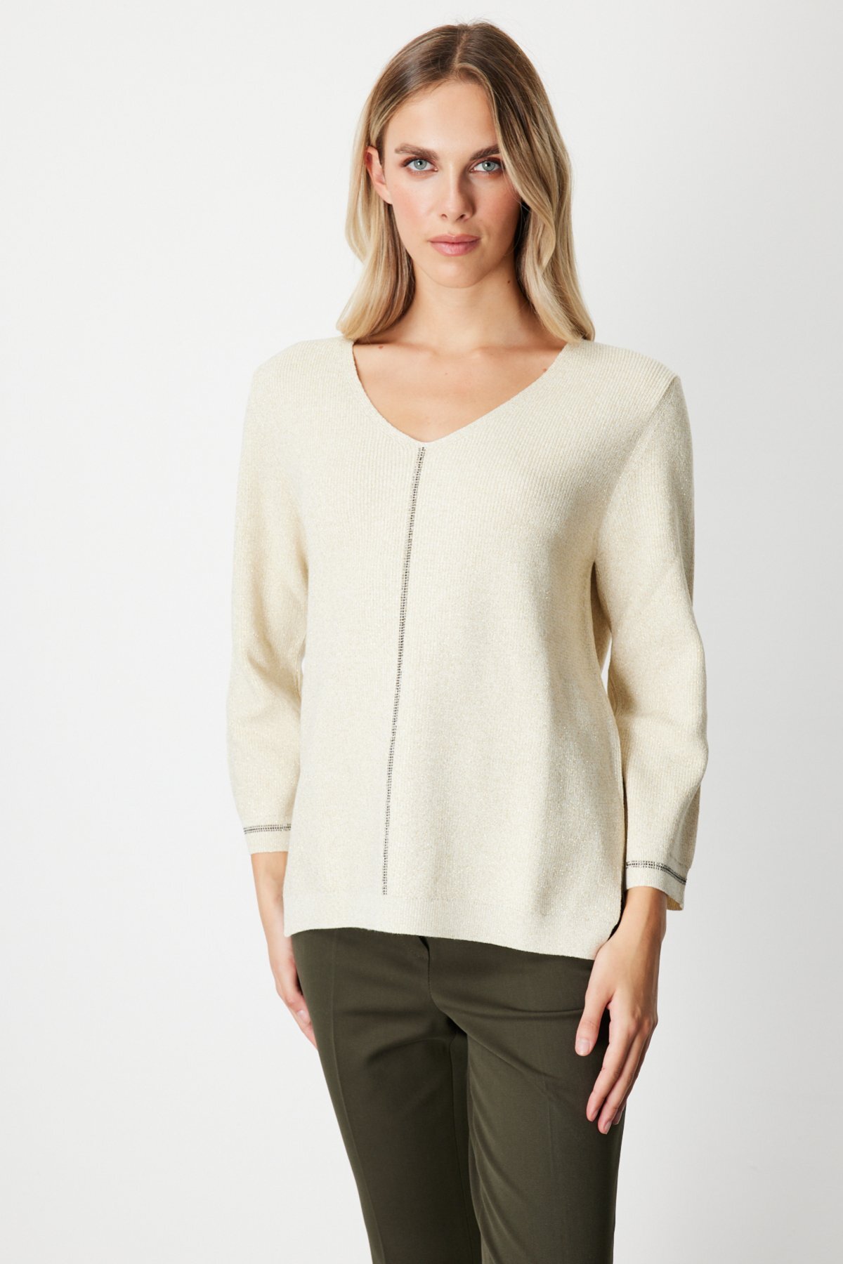Simli Kumaş Taş İşlemli Triko Kazak -65326